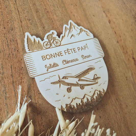 Maxi magnet vélo et avion personnalisé cadeau Papi