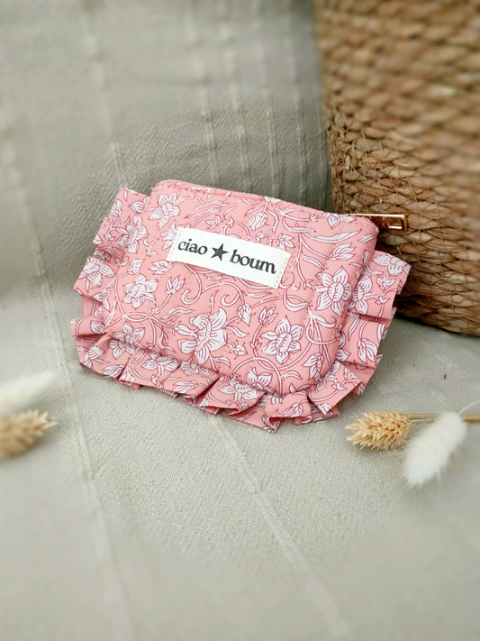 Porte-monnaie/pochette Ciao Boum 100% coton fleuri/rose