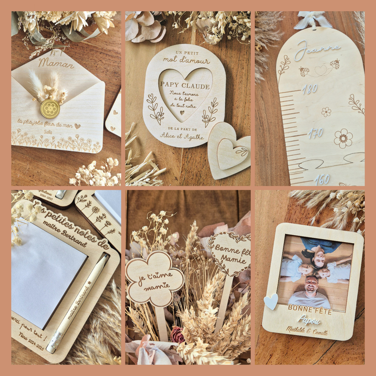 Enveloppe bois et fleurs séchées personnalisée - Mamie