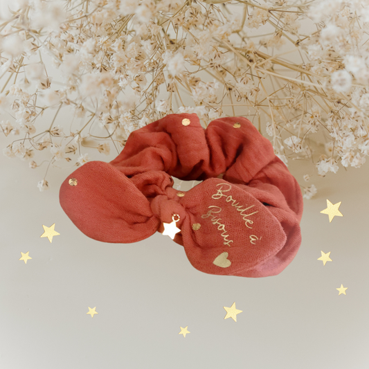 Chouchou Petit chat bada bada en double gaze coton vieux rose