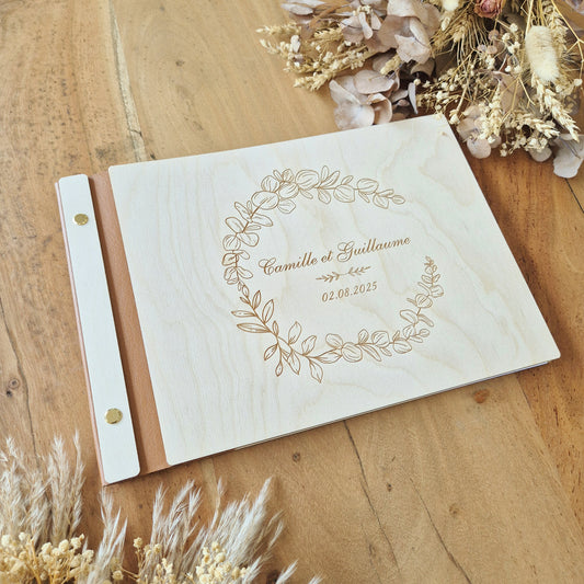 Livre d'or personnalisé sur mesure - Couronne de fleurs