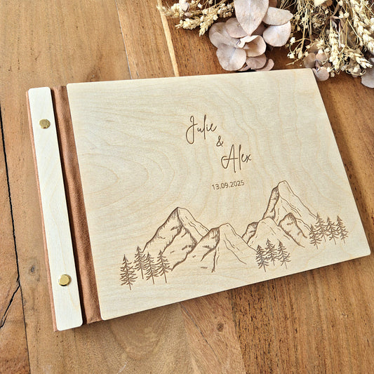 Livre d'or personnalisé sur mesure - Montagne/hiver/branches de sapin