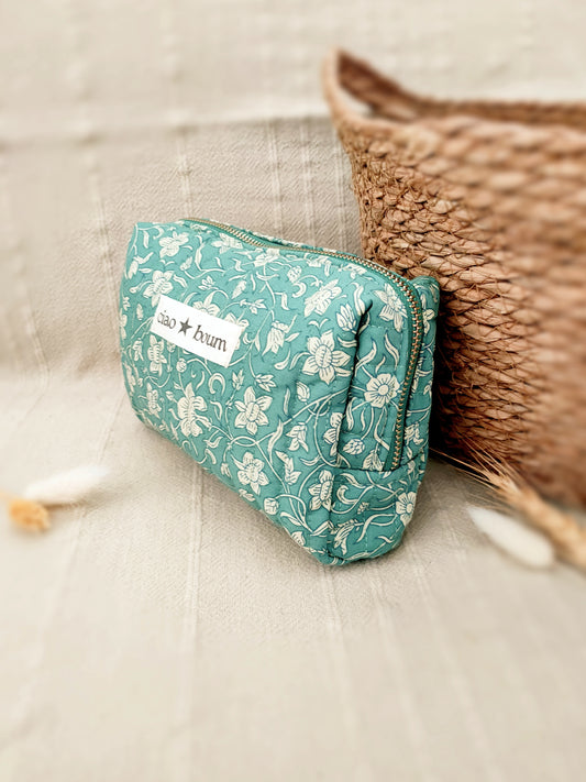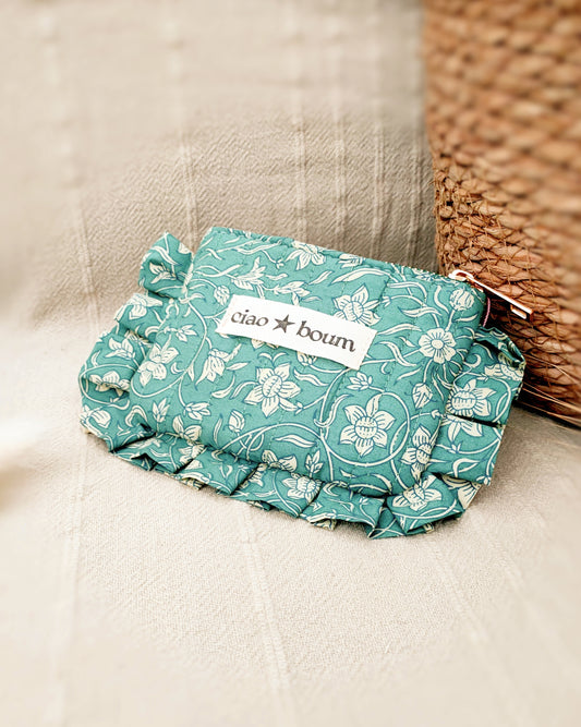 Trousse Ciao Boum 100% coton fleurie/vert