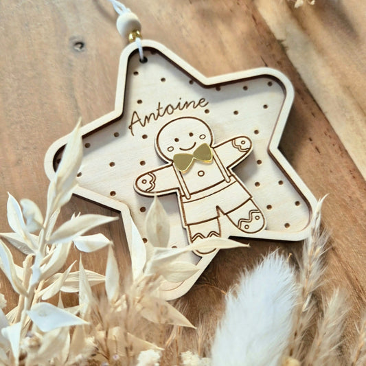 Suspension étoile & bonhomme de pain d'épices personnalisée