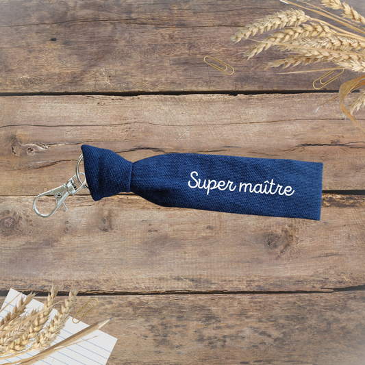 Porte-clés Super maître - coton bleu marine, texte blanc ou noir - personnalisable