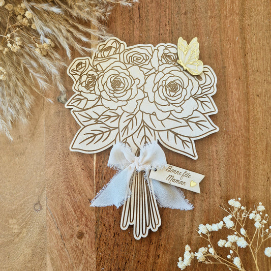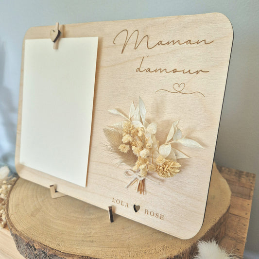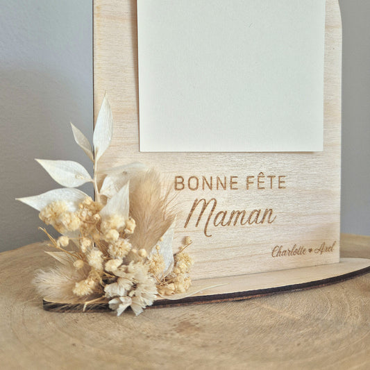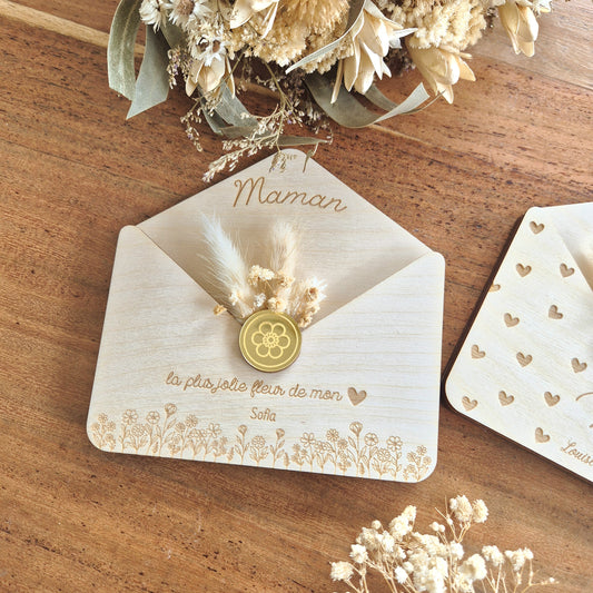 Enveloppe bois et fleurs séchées personnalisée - Maman