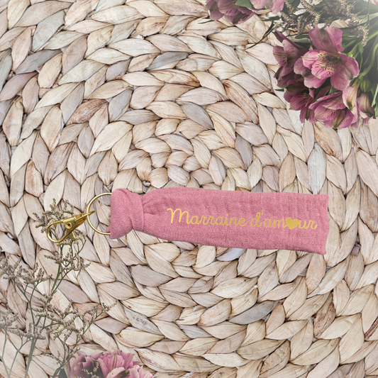 Porte-clés Marraine d'amour - collection Amour coton imprimé - personnalisable