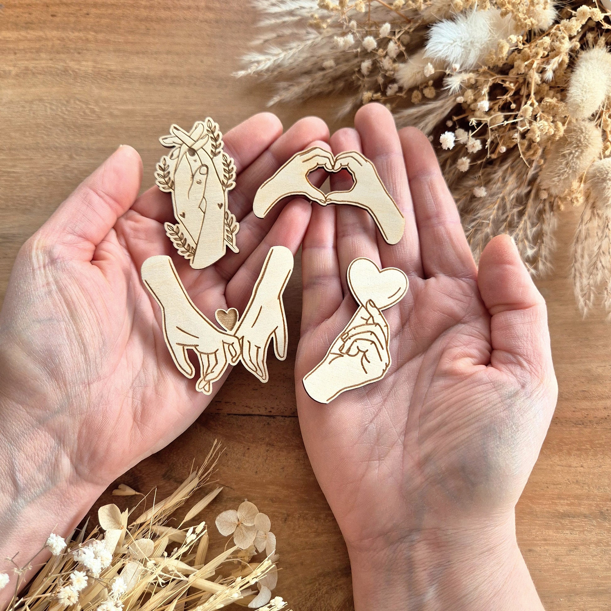 - mains formant un coeur : 3 cm x 6 cm - Épaisseur : 3 mm