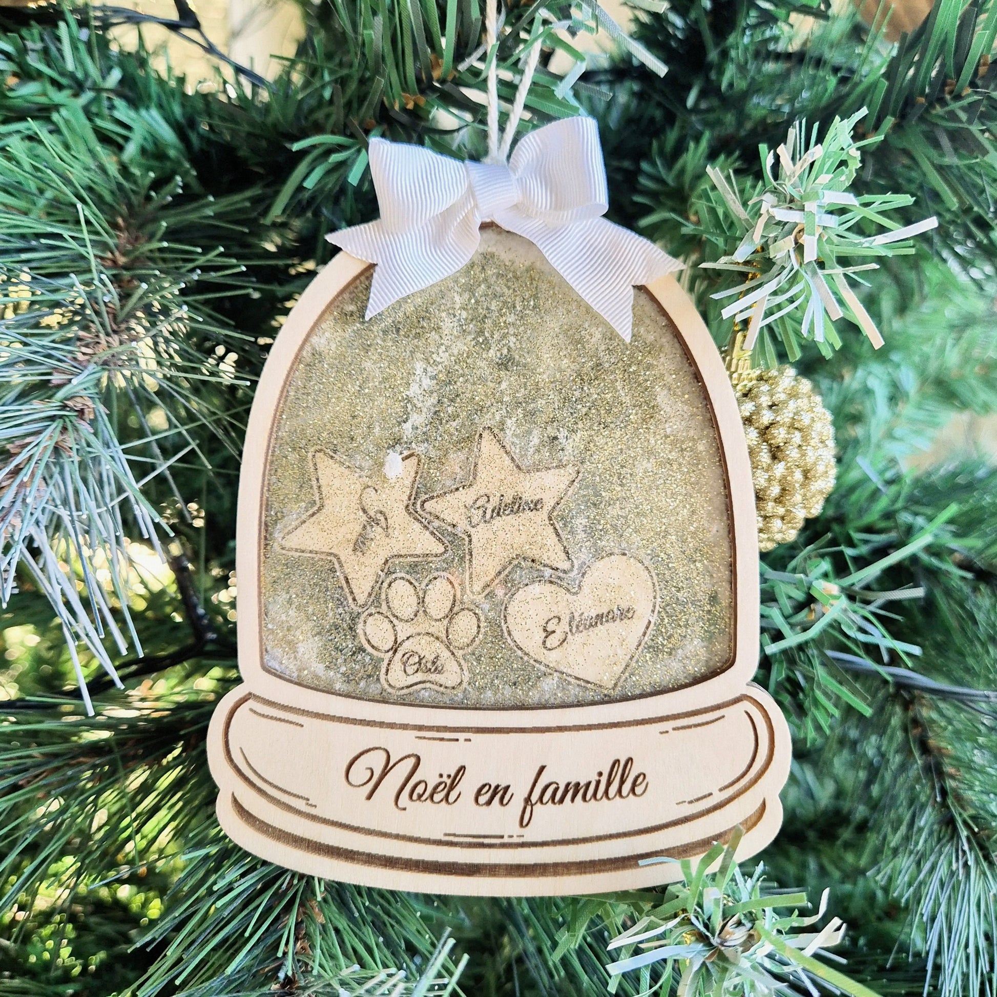 Boule à neige famille étoiles cœurs personnalisée