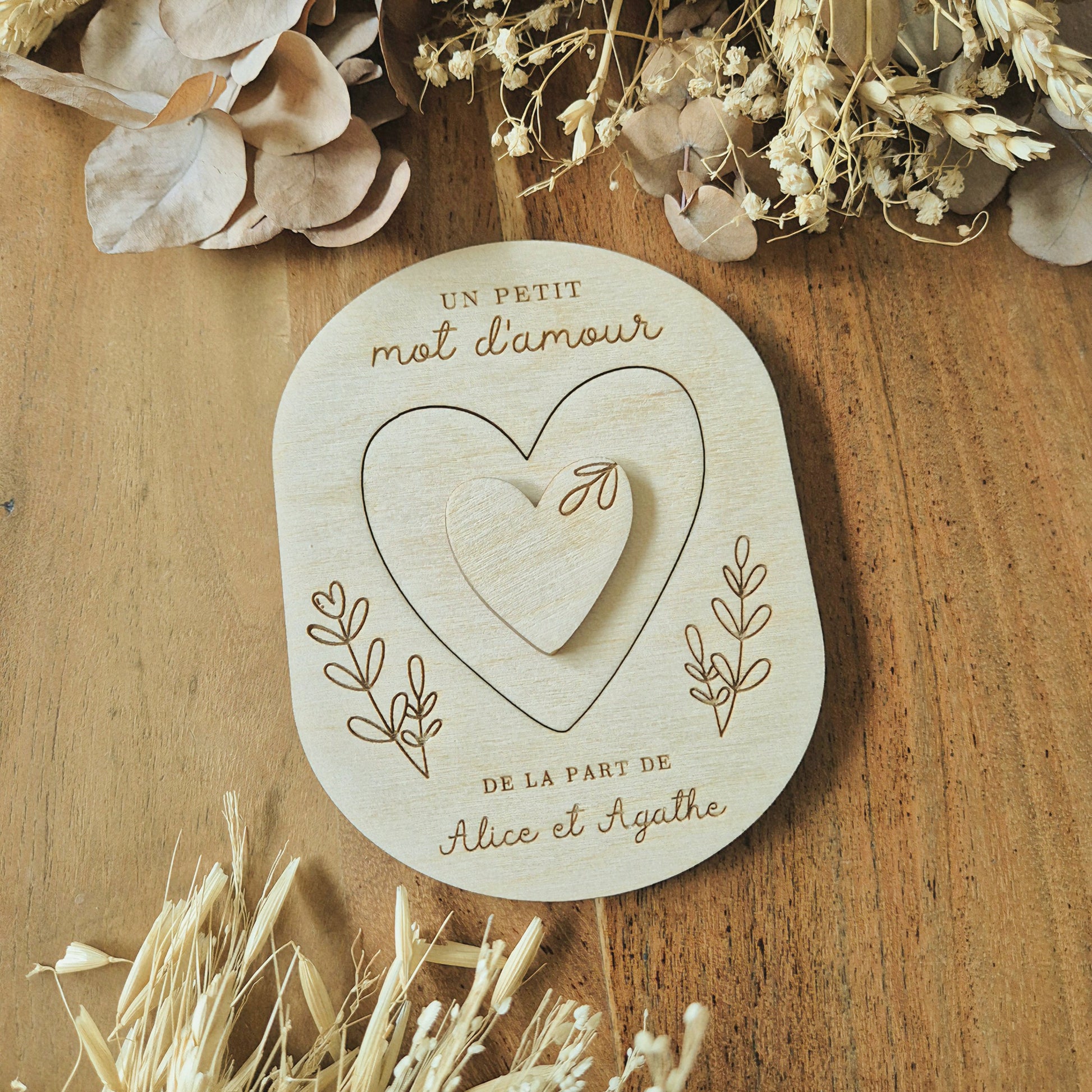 En soulevant le coeur, il découvrira le petit mot d'amour !