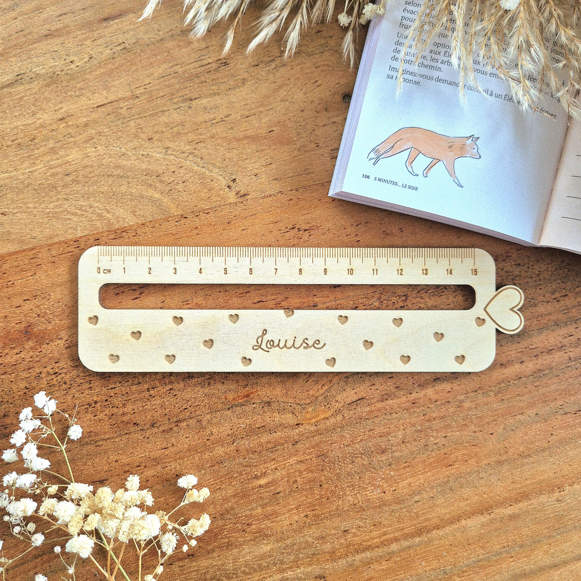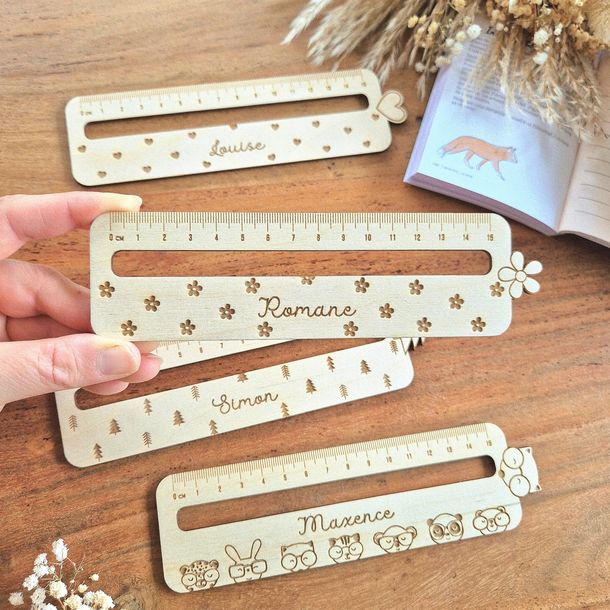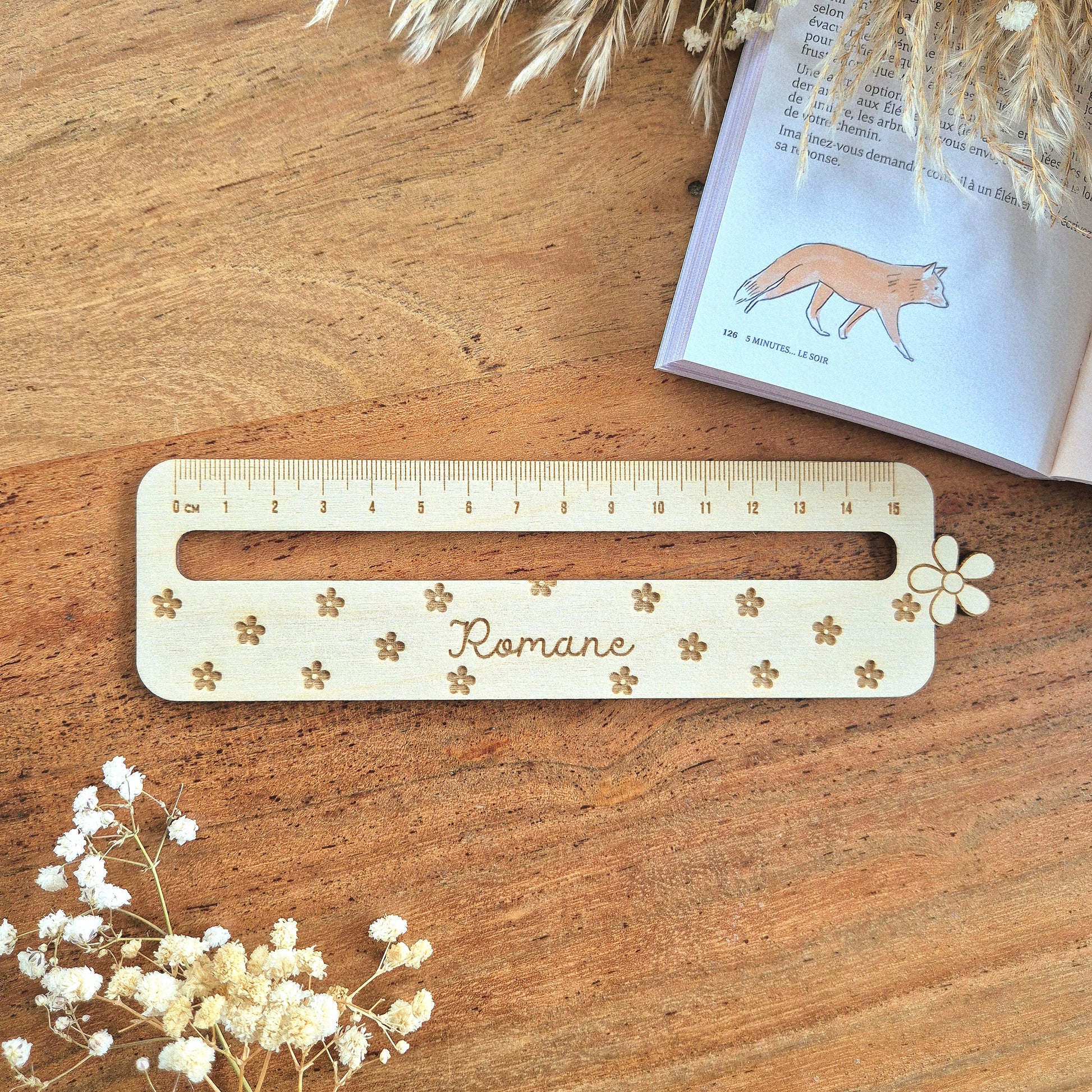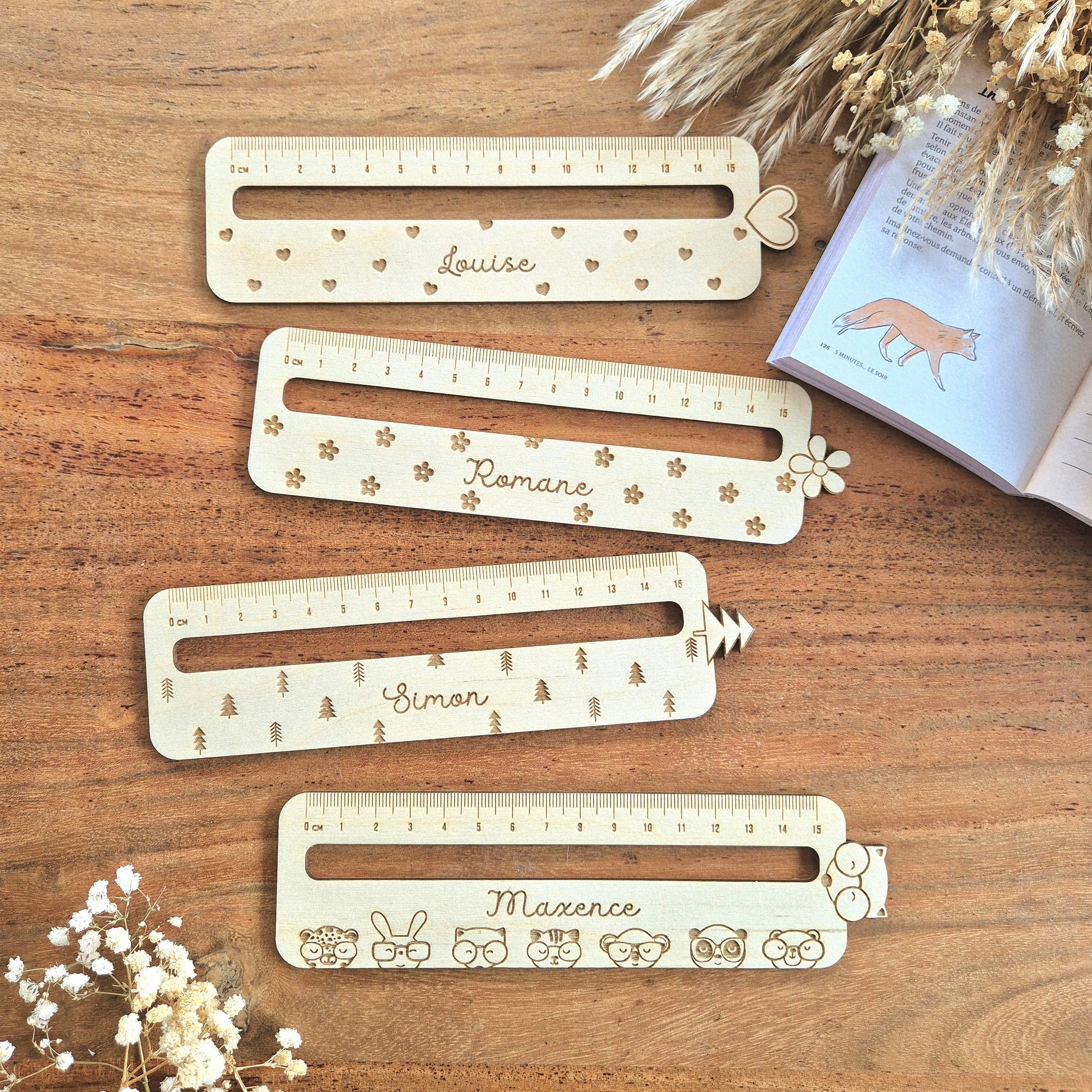 Personnalisez sa règle avec son prénom et son thème préféré (coeurs, marguerites, sapins ou animaux à lunettes).
