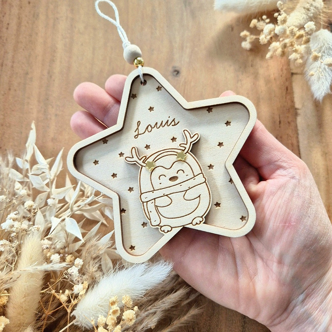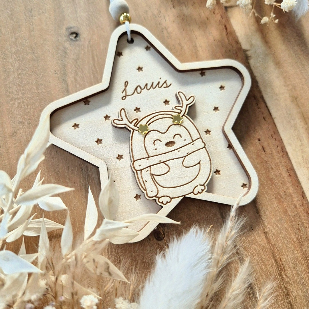 Avec son petit pingouin au regard malicieux, cette suspension est une décoration pleine de tendresse